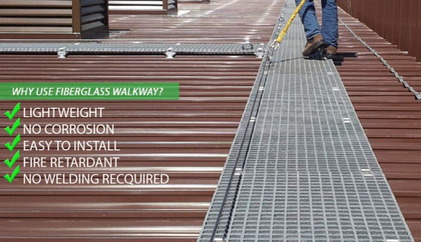Anti slip walkway system provides a safe, stable, slip-resistant, and level working surface for anyone working on or accessing the roof. It also protects the roof from unnecessary damage.