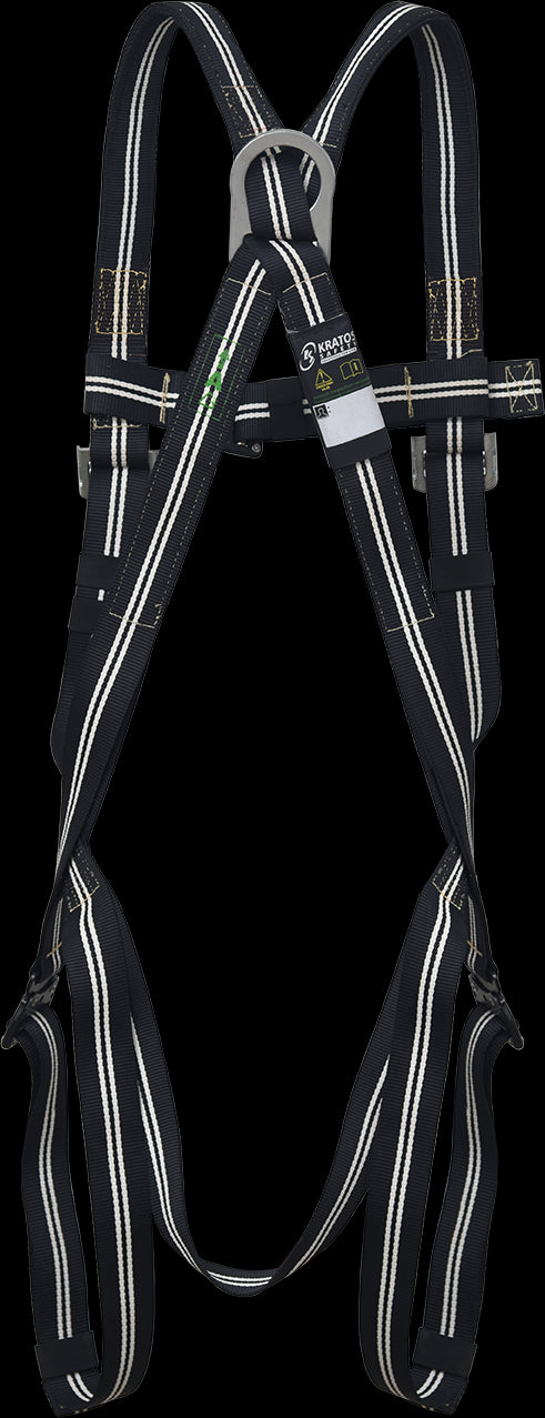 Attachment Elements - 1 dorsal D-Ring, 2 chest attachment textile loops for fall arrest.
