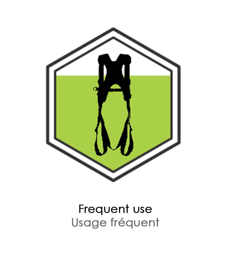 Attachment Elements - 2 chest attachment textile loops and a dorsal attachment D-Ring for fall arrest, 2 lateral D-Rings for work positioning.