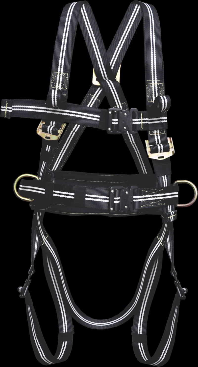 Convenience - Static strength of the harness webbing has been tested after being exposed to the small molten metal splashes. Automatic buckles on thigh straps.