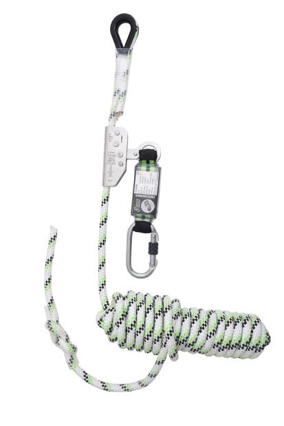 - Works on 12 mm diameter Polyester kernmantle rope anchorage line (incorporated permanently on the anchorage line) and comes with an energy absorbing element.